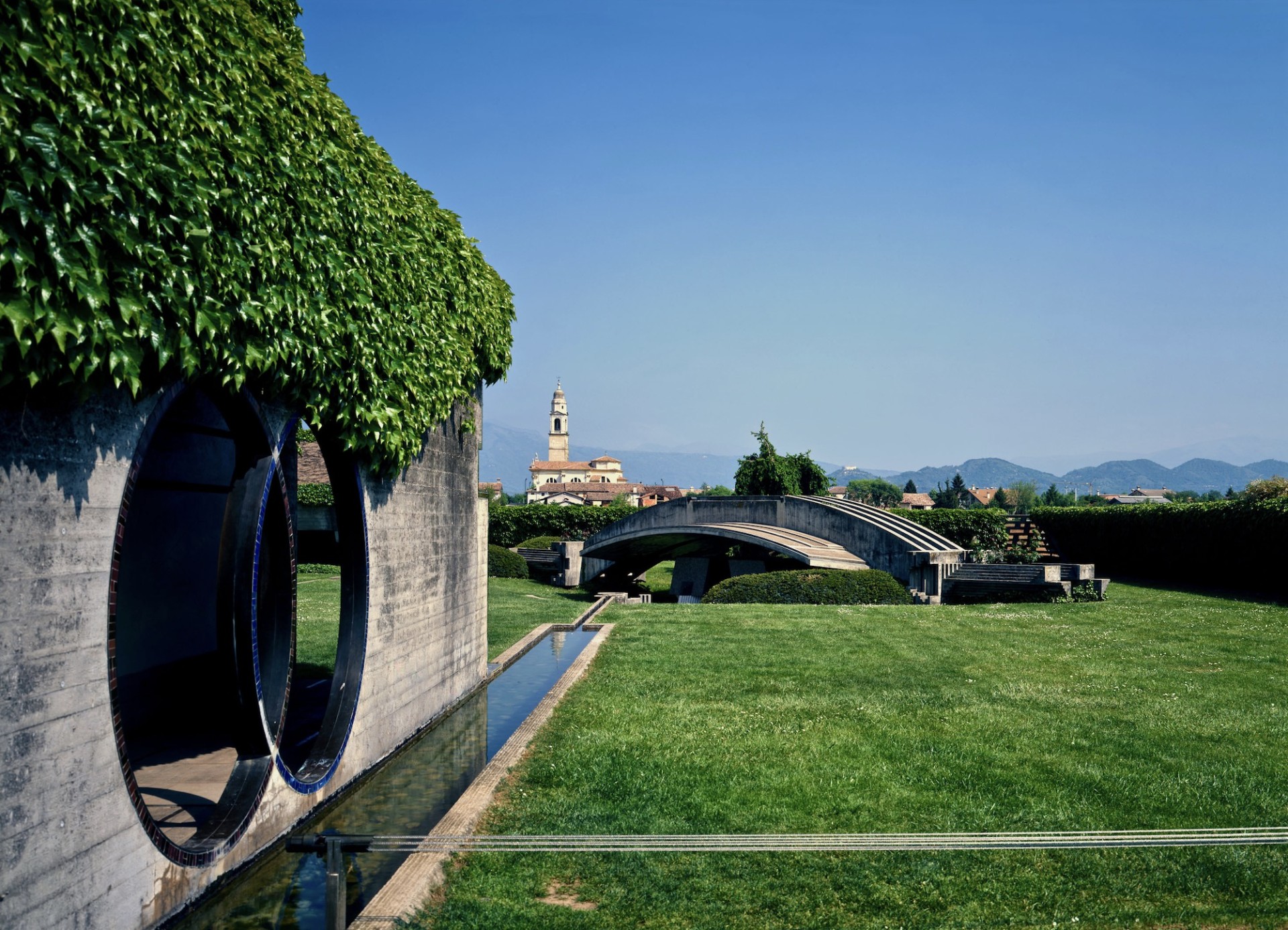 «Per Scarpa il Giappone ha rappresentato tante cose: un riferimento, un modello, una conferma, una consolazione ma, soprattutto, la consapevolezza di come il senso della tradizione possa rimanere attivo e funzionante anche nel tempo presente», riflette Pierconti. Così allora comprendiamo quell’orchestrare suoni, ad esempio, come parte germinativa dell’architettura. Per restare al caso della Tomba Brion, che impressionava così tanto Sekiya Masaaki, l’acqua può arrivare a dilatare o a rannicchiare la percezione degli spazi, come Scarpa aveva scoperto in un giardino di muschio e in un bosco di bambù. È la pioggia che scroscia sulla ‘Tomba dei coniugi’ o il gocciolamento studiato dalla feritoia nellla ‘Tomba dei familiari’.